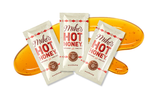 Mike's Hot Honey launches 0.75 oz Squeeze Packets for delivery, takeout and meal kits.